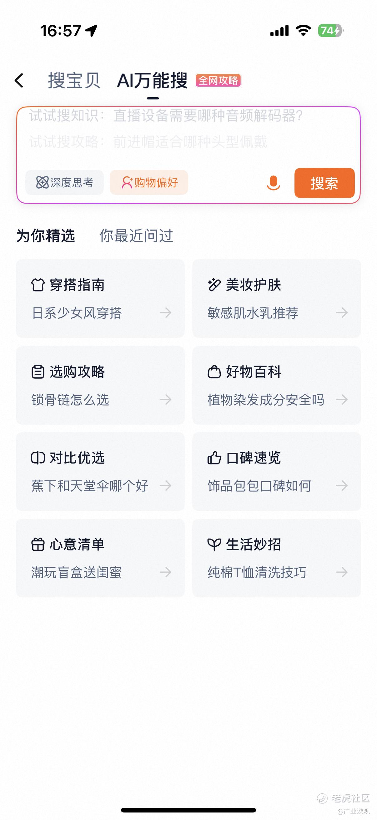 通过“AI万能搜”,消费者可以获得基于大模型的“深度思考”和“联网能力”提供的涵盖了文字、图片和视频的多样化的购物攻略、口碑评测、优惠咨询等答案。而“AI帮我挑”则通过多轮对话及文字+商品的形式,帮助消费者解决在购物当中遭遇到的挑选难、决策难的痛点和难题,并提供个性化、精准化的商品推荐。