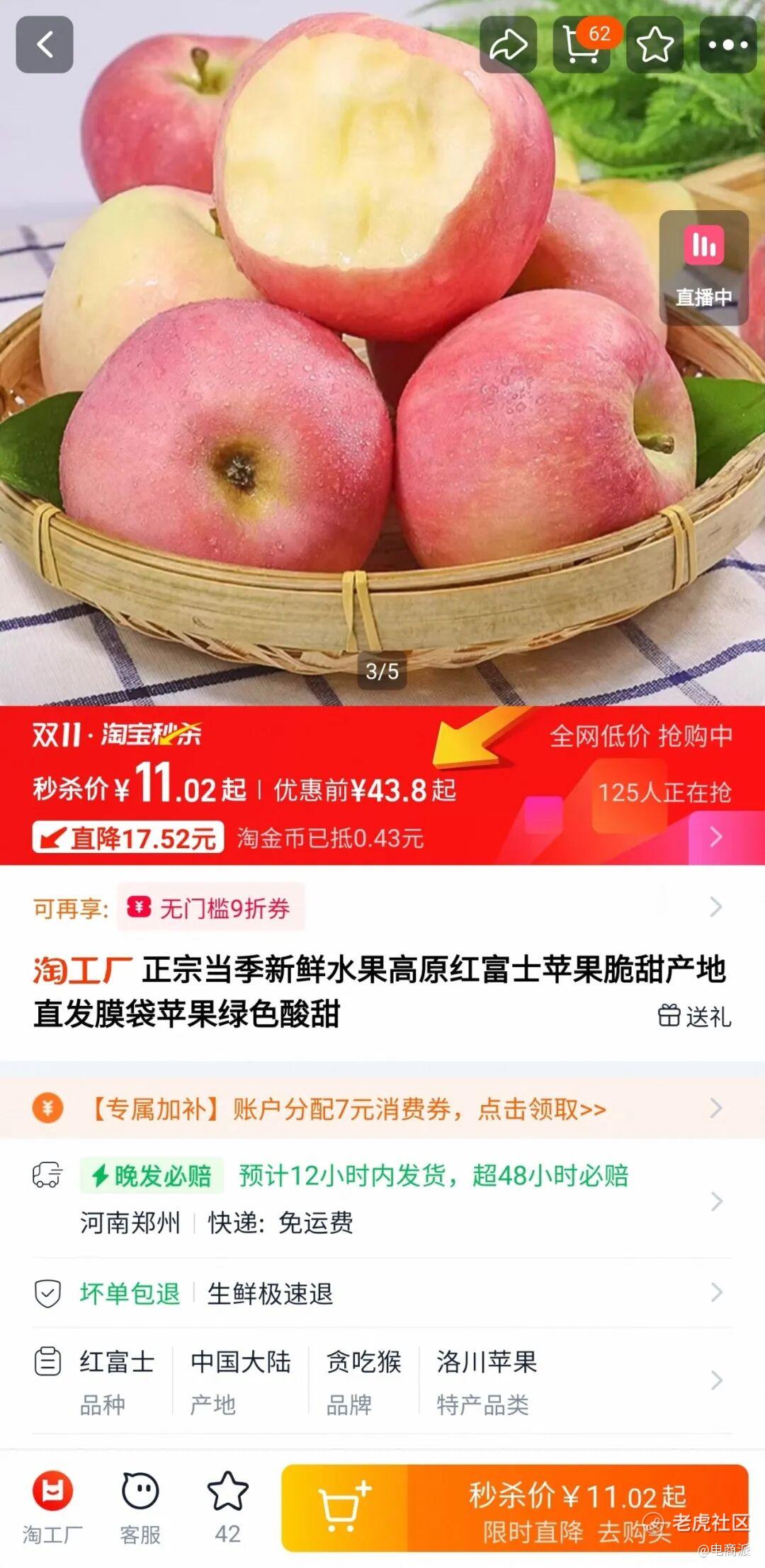双11期间,贪吃猴的洛川苹果等产品,报名淘宝秒杀和双11等活动,借助搜推和直播场景持续曝光,店铺日销量最高达到20W+,同时成交额环比增长150%,还打造出6款行业爆品。