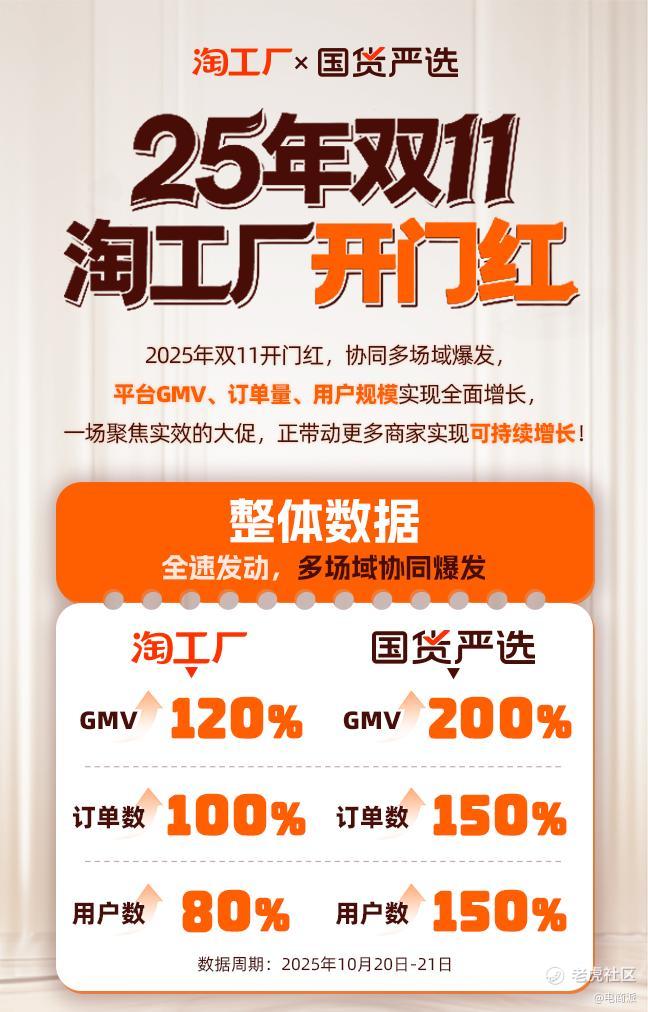 官方公布的战报数据显示,10月20-21日,天猫双11开门红期间,淘工厂整体GMV增长120%、订单数增长100%,实现翻倍式全面增长。其中,深圳3C数码配件、金华家居布艺、南通床上用品等多个龙头产业带成交破千万,充分验证了淘工厂能够带给产业带商家的实质帮助。