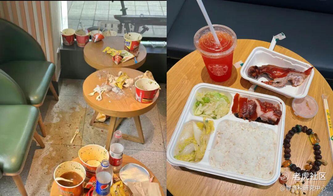 有人在星巴克门店吃中式快餐,肴核既尽、杯盘狼藉后原地开溜;还有人在其他品牌买了奶茶后,因为对方门店没地方坐,而选择去星巴克鸠占鹊巢。