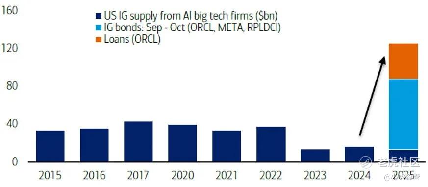 与此同时,AI开支可持续性的争议也是上周市场的一大重点。一方面,OpenAICFO在公开场合因提及“政府背书”而引发舆论争议,后澄清其意在扩大税收抵免,希望将AI服务器、数据中心及电网设备纳入支持范围,而非寻求债务兜底。另一方面,甲骨文、META等公司近期纷纷举债加码AI基础设施。BOA数据显示,仅在9,10两个月AI大型科技公司就发行了高达750亿美元的债券,超过了往年总和的两倍。这意味着,AI竞争从烧盈利、烧收入再到如今的烧债务。对此,华尔街并不喜欢,信用市场上Oracle和CoreWeave的信用违约互换(CDS)均出现了暴涨。