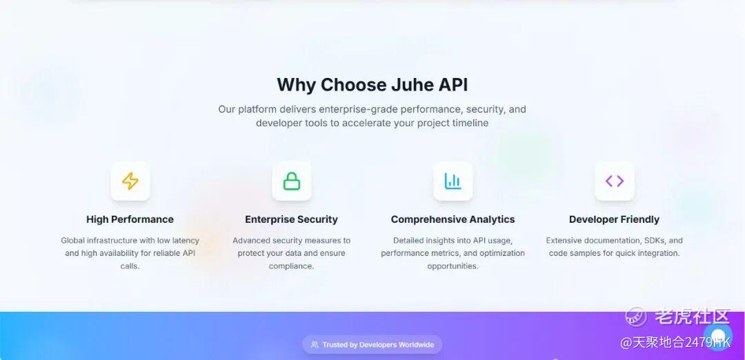 对于有出海需求的开发者和企业而言,他们更希望能找到一个可扩展性、成本效益、安全性和开发效率的有保障的海外数据平台。JuheAPI,即聚合数据 API 国际平台,就诞生在这样一个节点。