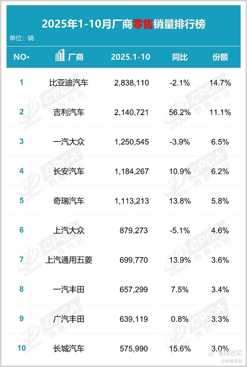 根据乘联分会数据,吉利汽车前10个月国内总销量超214万辆,以56.2%的增速领先TOP10同行40-60个百分点,高于大盘48个百分点,是同期国内销量增速最快的车企。