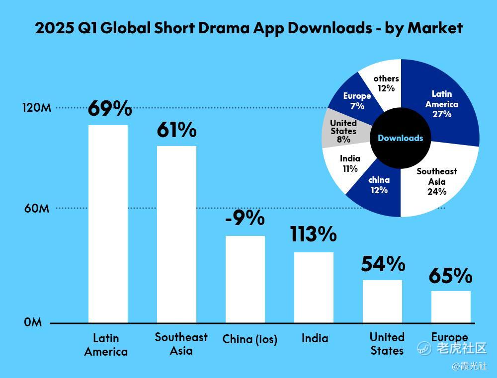比如美国目前是海外短剧应用的最大消费国,2025 Q1提供了短剧APP全球总收入的49%,单季营收约3.5亿美元。这很大程度上受益于美国用户良好的内容付费习惯。