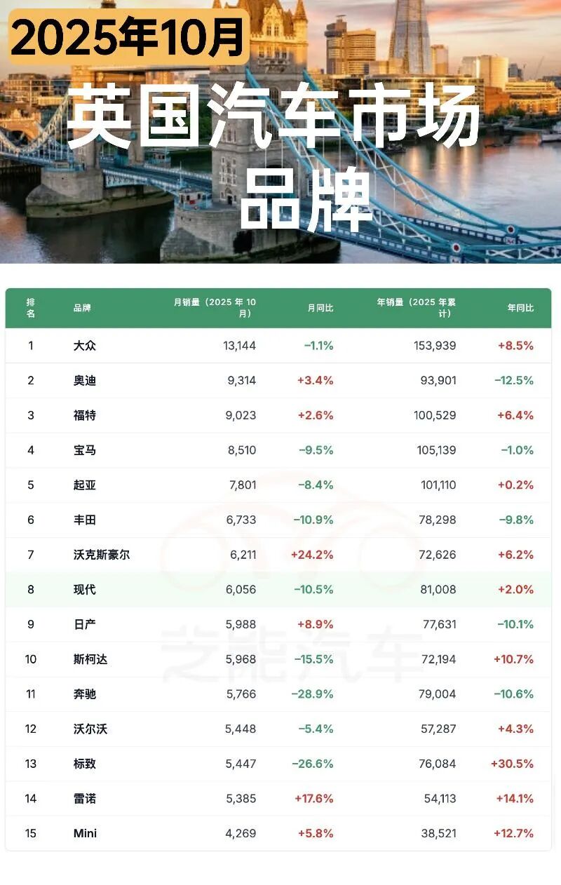 整体来看,电动化转型已成趋势,传统燃油车在英国市场的地位正被快速削弱。