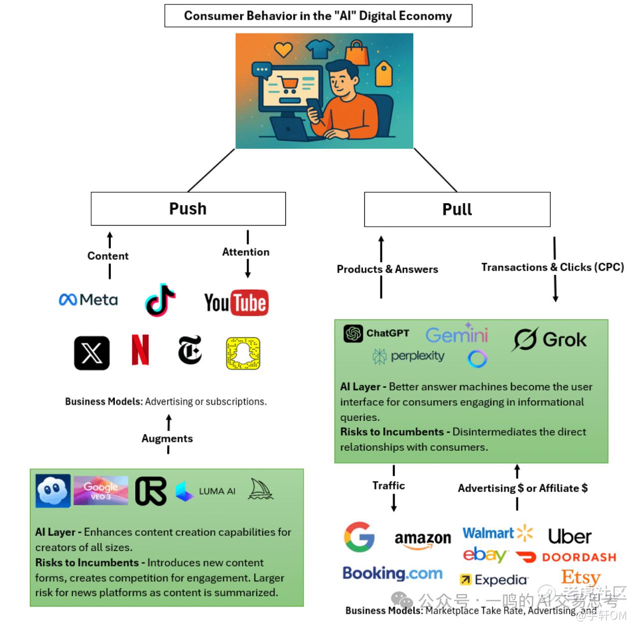 很快,一个AI Layer会在右侧Pull这一端出现。在流量越来越贵的今天,现有的电商竞争格局、数字广告上下游,每一张桌子都是满的。而刚刚闯进来的AI大模型公司们,已经在摩拳擦掌。