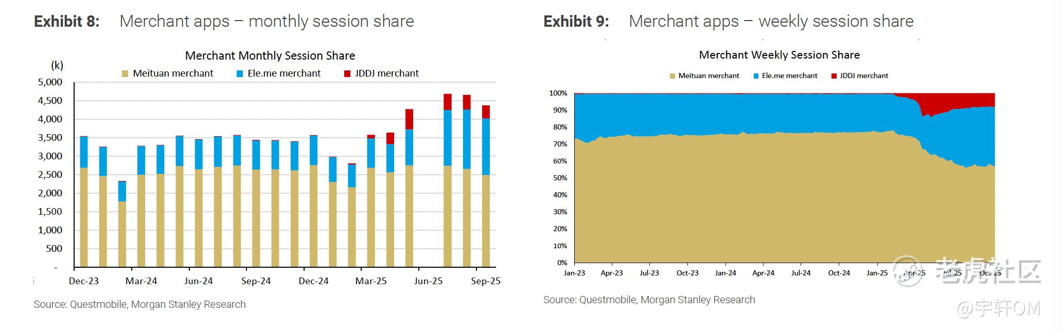 商家:则陷入了“成本陷阱”:JD最初“全额补贴”用户,但大摩指出,平台随后迅速将成本转嫁给商家,导致商家在用户补贴上承担的比例从“初期的0%,升至如今的70%-80%”("Merchant subsidy ratio on user coupons increased from 0% initially... to 70-80% eventually");同时,平台还开始征收佣金和配送费。