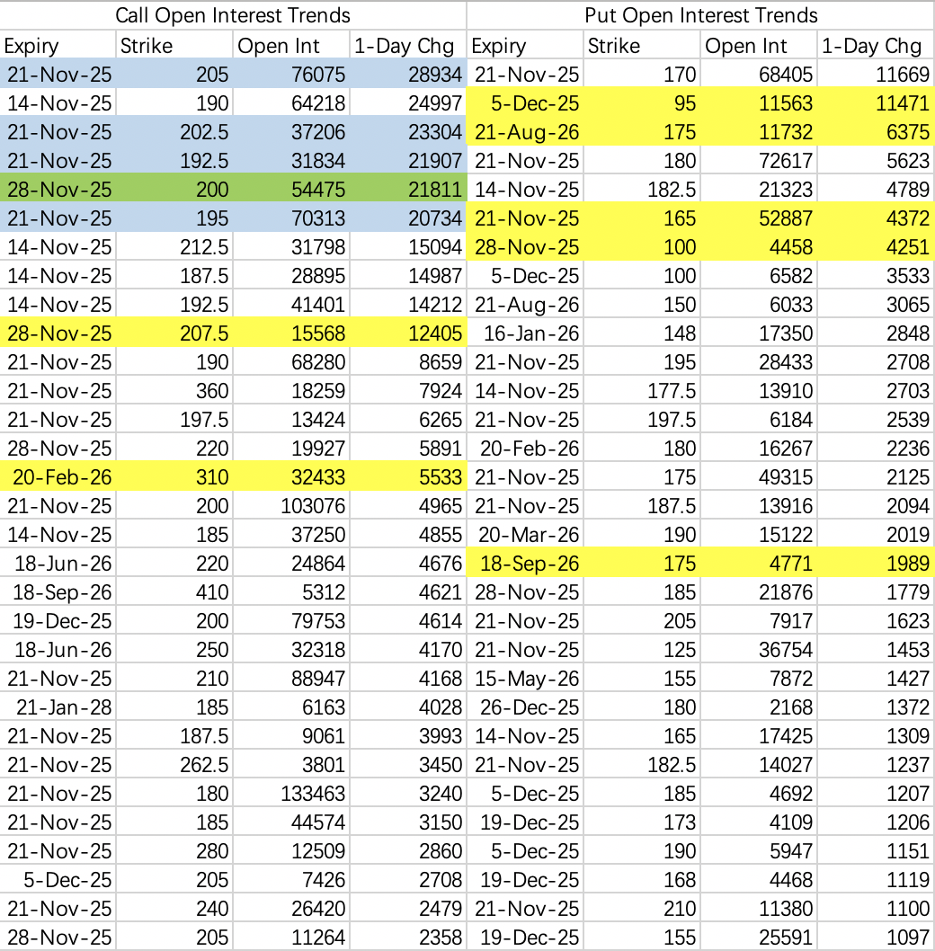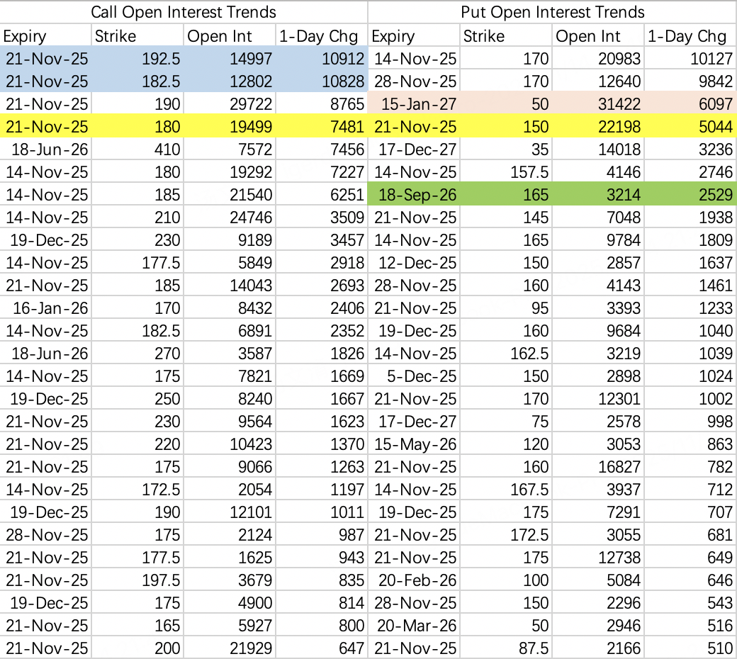 总体来说机构sell call给出预期跟本周一样,sell call195 $NVDA 20251121 195.0 CALL$ 对冲买入205 $NVDA 20251121 205.0 CALL$ ,大概率低于192.5~195。