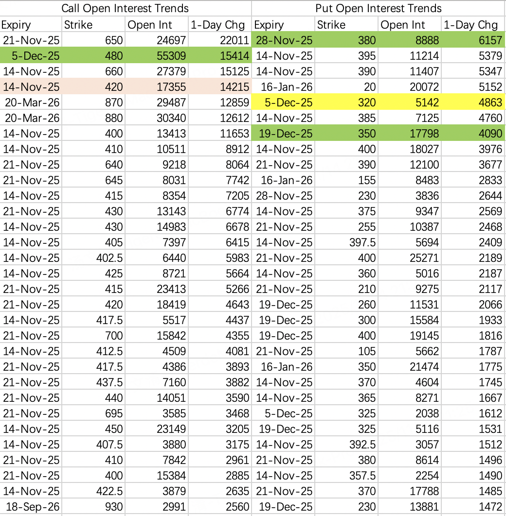 看跌期权说法比较多,空头大部队目标价380:buy380put $TSLA 20251128 380.0 PUT$