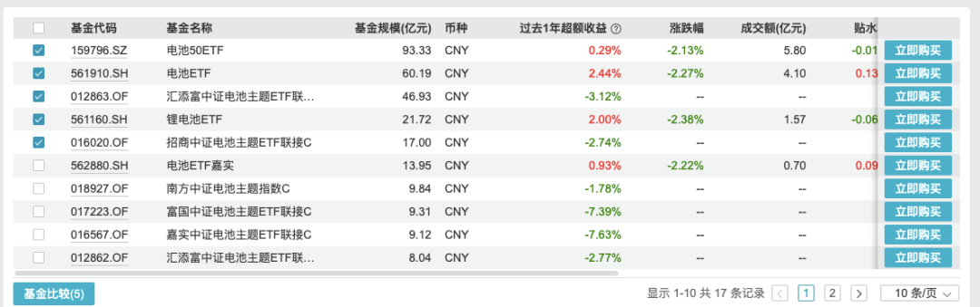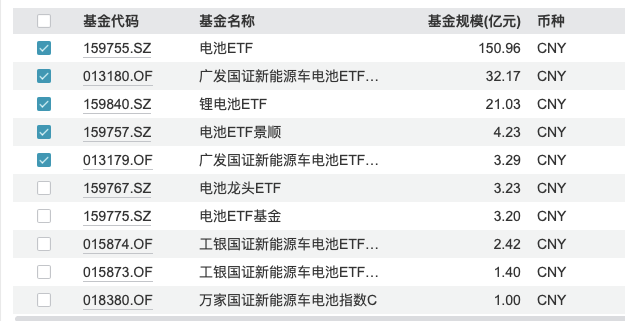 跟踪国证新能源电池指数(980027.CNI)的产品有6只,规模34亿,规模要小于前两个指数。
