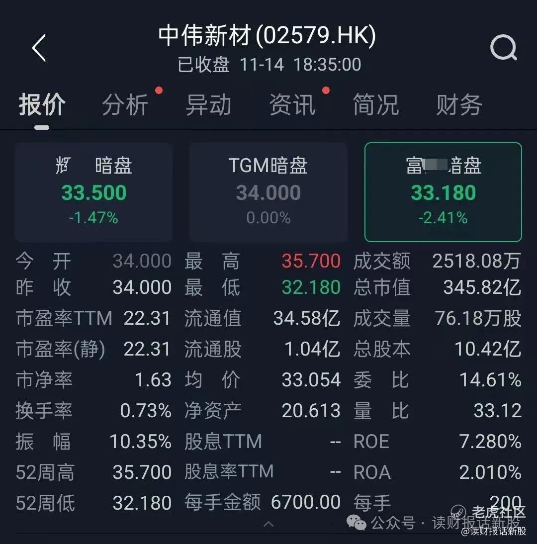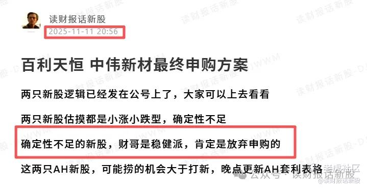 在打新私蜜圈《百利天恒 中伟新材最终申购方案》财哥明确发表放弃申购(隔壁的割王之王百利天恒 $百利天恒(02615)$ 也是明确放弃,接着就出了延迟上市)