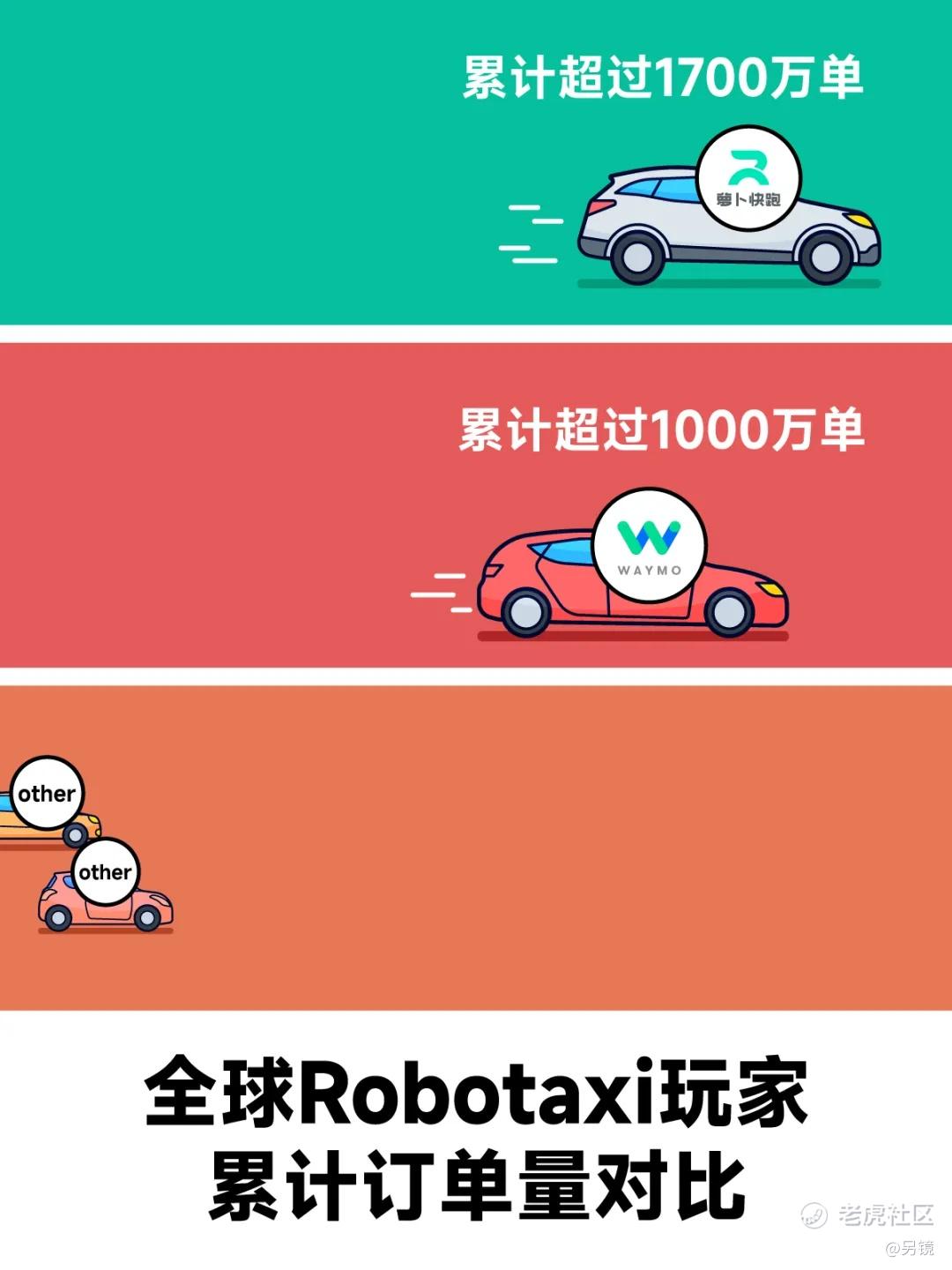 从累计订单量来看,萝卜快跑目前累计超过1700万单,高于Waymo的1000万单。