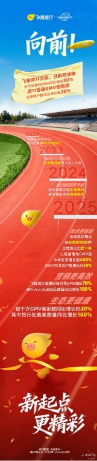 本报讯 11月14日24时,2025年飞猪“双11”全球旅行节落下帷幕。在阿里巴巴“大消费平台”的势能推动下,飞猪大促规模再创新高,日销也迎来强劲增长,“双11”期间,平台整体履约GMV较去年增长30%。