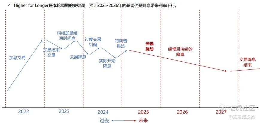 1.从下图中看,预计2025-2026年的基调仍是降息带来的利率下行,这也是当前全球市场的投资主体,正在以“唯美元轮”转向“弱美元”的新范式。