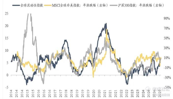 从历史上看,全球流动性往往顺应4-5年一轮的完整美元周期,呈现出周期性波动的规律,而美元指数的强弱几乎主导了全球流动性的变化趋势。