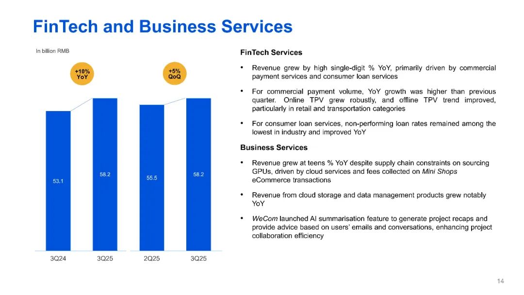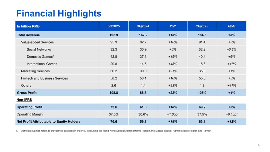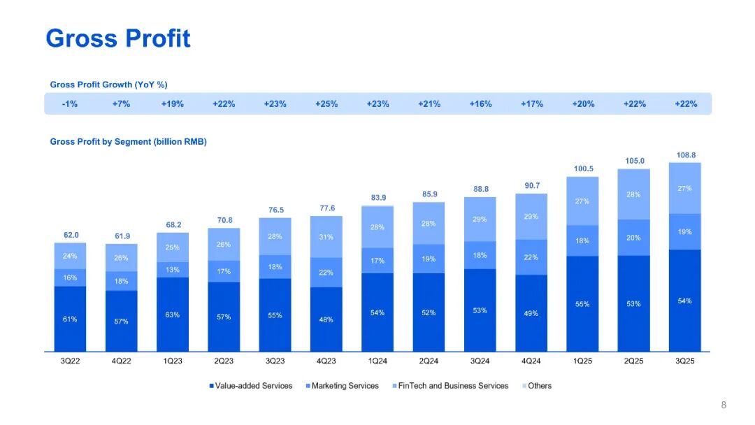 - 收入同比上升+5%,主要受视频号直播服务、音乐付费会员及小游戏平台服务费收入增长推动