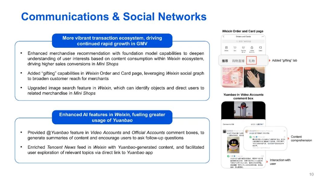 - 强化商品推荐功能,通过基础模型能力深度理解用户在微信生态内的内容兴趣,提升小程序商店销售转化率