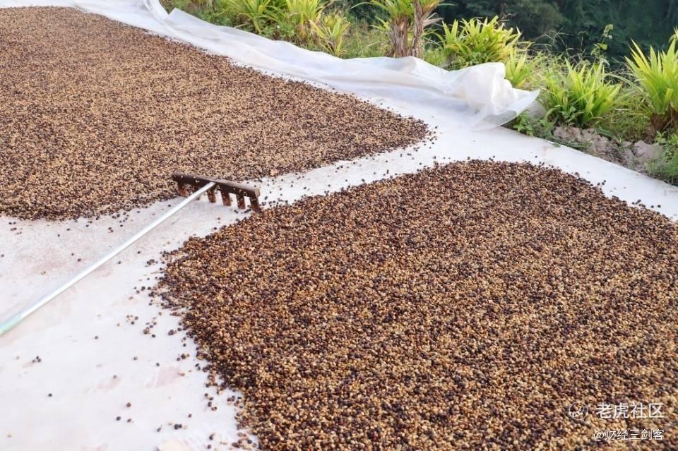 ▲在云南普洱的咖啡庄园,咖啡正在进行日晒处理