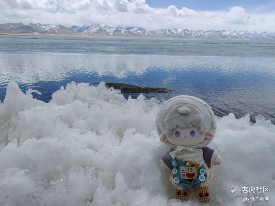▲西藏姑娘白玛曲珍带着从拼多多购买的玩偶打卡纳木措