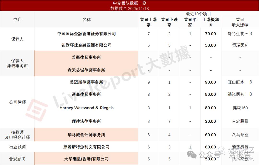 据**大数据统计,明基医院中介团队共计11家,其中保荐人2家,近10家保荐项目数据表现有待提升;公司律师共计4家,综合项目数据表现普通。整体而言中介团队历史数据表现缺乏亮点。