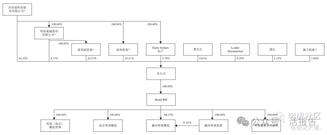 佳世达直接持有公司44.32%股权,并通过达利贰投资、达利投资、明基电通、Darly Venture (L)间接持有公司股权,合计持股95.02%,为公司控股股东。