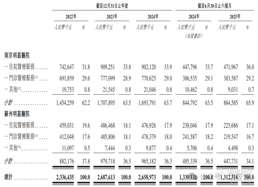 公司的收入主要来自提供综合医疗服务,包括住院医疗服务及门诊医疗服务。