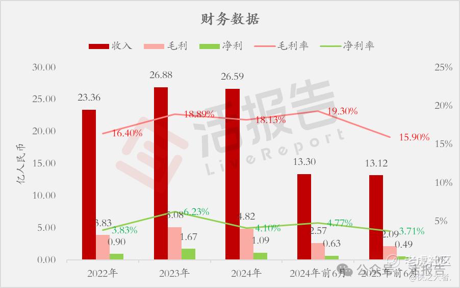 收入分别约为人民币23.36亿、26.88亿、26.59亿、13.30亿、13.12亿,2025年前6月同比-1.34%;