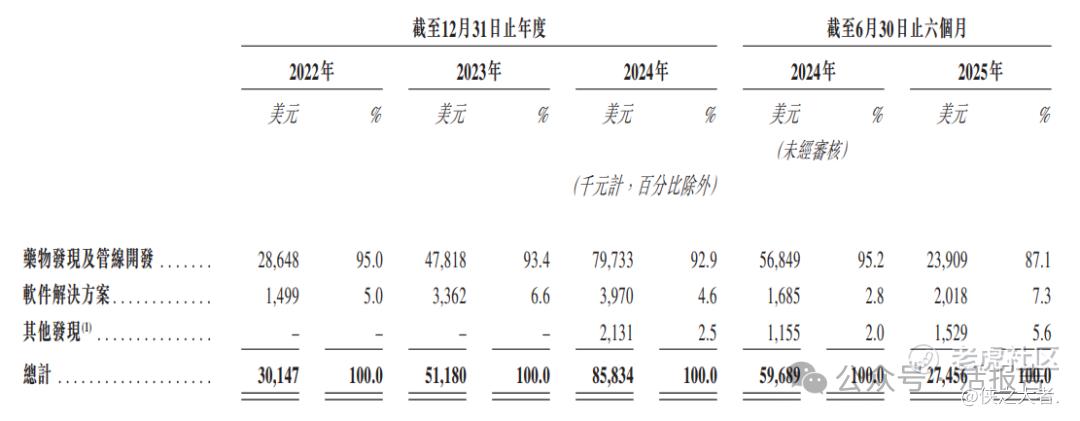 公司的业务模式包括管线药物开发、药物发现服务及软件解决方案服务。
