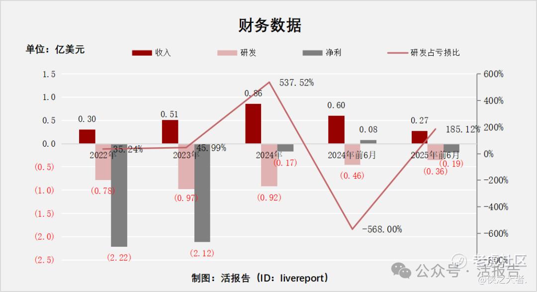 截至2025年6月30日,公司经营现金流为-3684.2万美元,账上现金2.12亿美元。