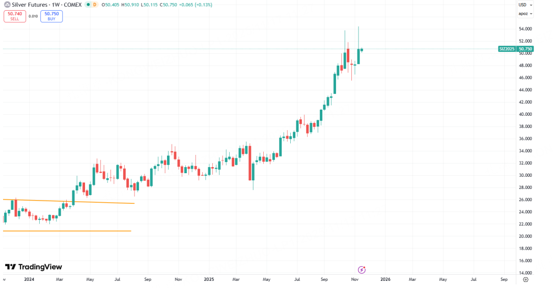 白银则在上周再度上演了虚假突破的好戏,期货白银小幅新高的情况下,期货黄金和现货白银都没有出现跟随走势。黄金是一个标准的二次反弹,基本再度确认跌破3900就可以宣判贵金属将步加密市场后尘而明确走弱。而对于白银来说,假突破的破坏性会更加巨大,45.5跌破之后恐怕将面临加速下跌的风险。考虑到金银比探底回升的表现,以及长期一贯的白银下跌会加速特性,多金空银还将是中长期的首选。