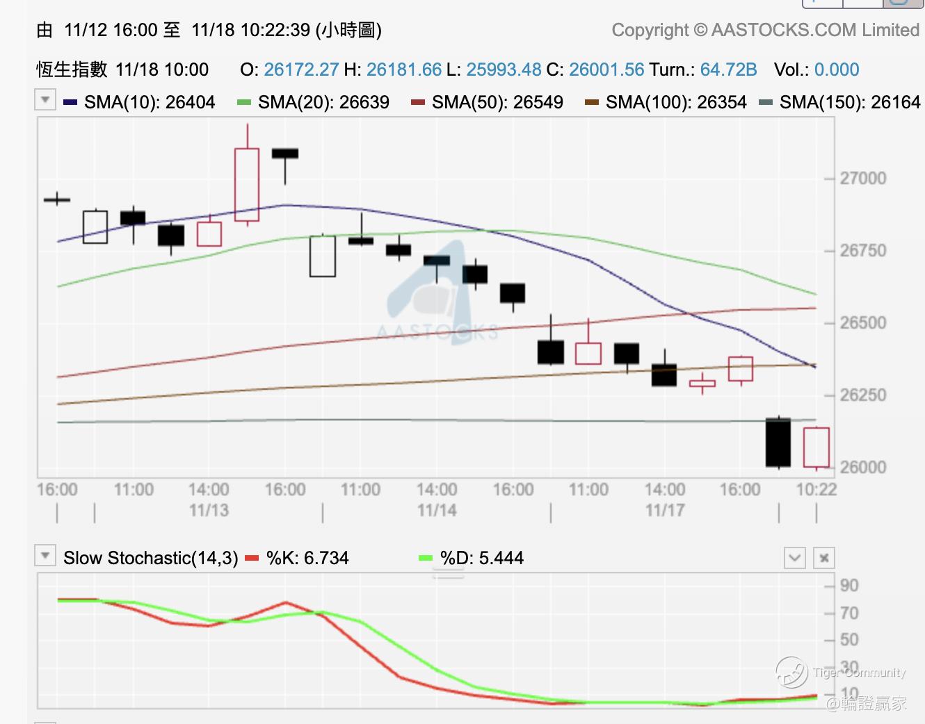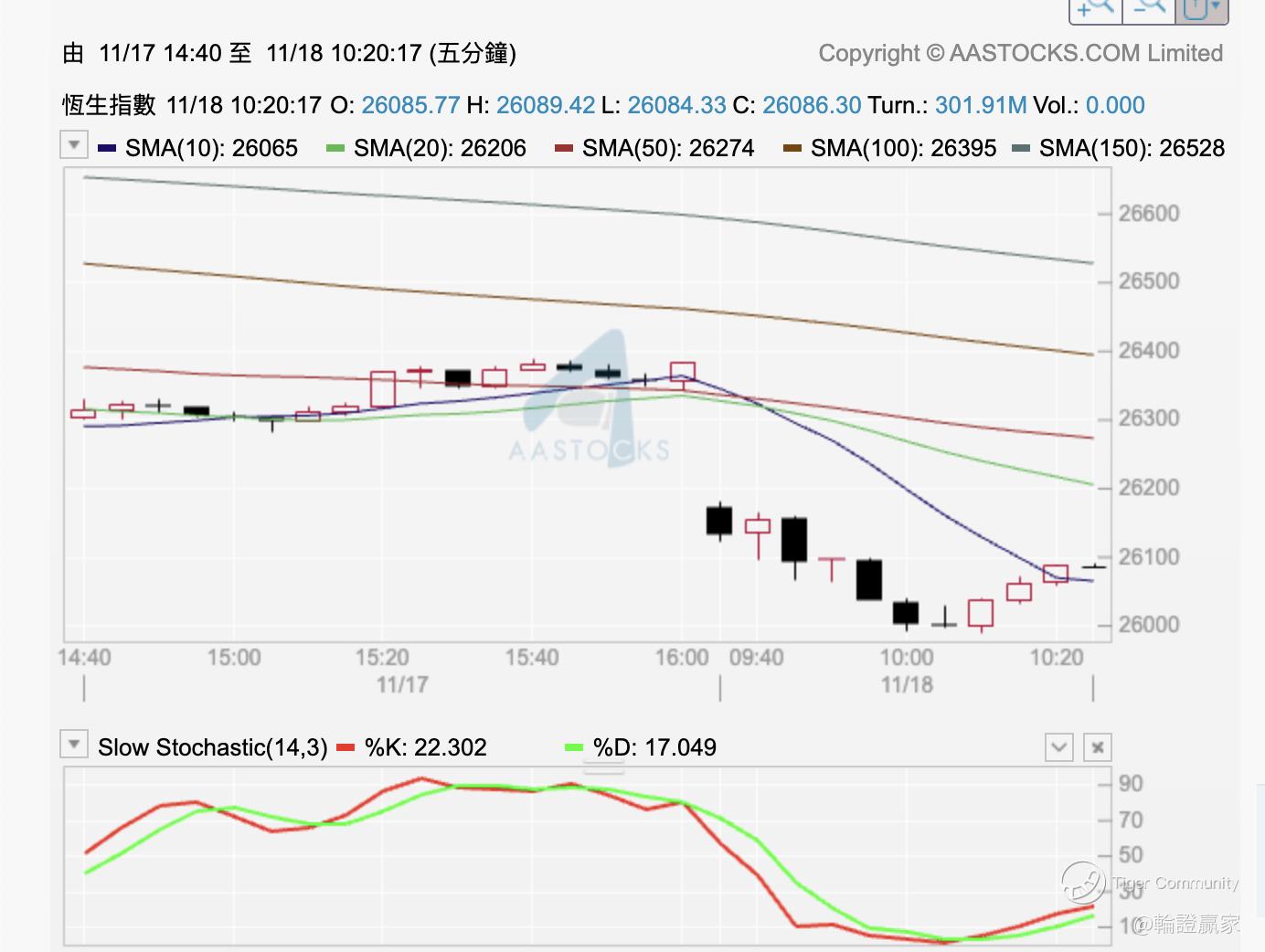 10点后见指数向下穿过26000点,作战室淡仓清走晒之后,大家都等紧指数会唔会确认穿26000点呢个关口位。望望钟依家10点10分,暂时有见指数于2599X点呢度筑底中。