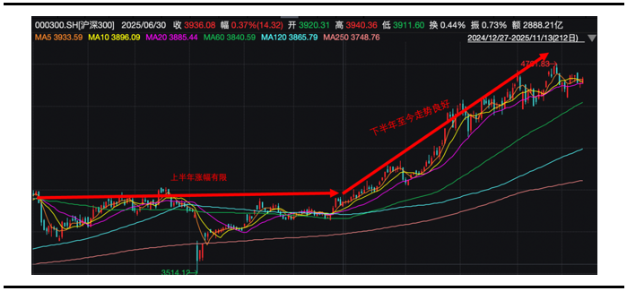 图1:沪深300上半年涨幅有限,下半年走势显著好转