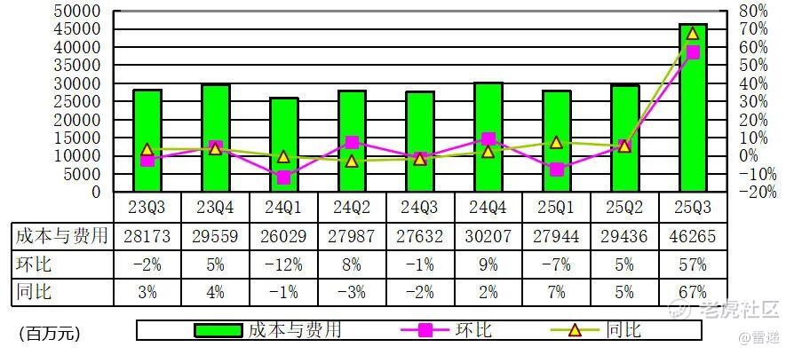 百度2025年第三季度销售成本为183亿元(25.7亿美元),同比增长12%,主要是由于与智能云业务相关的成本及内容成本增加。
