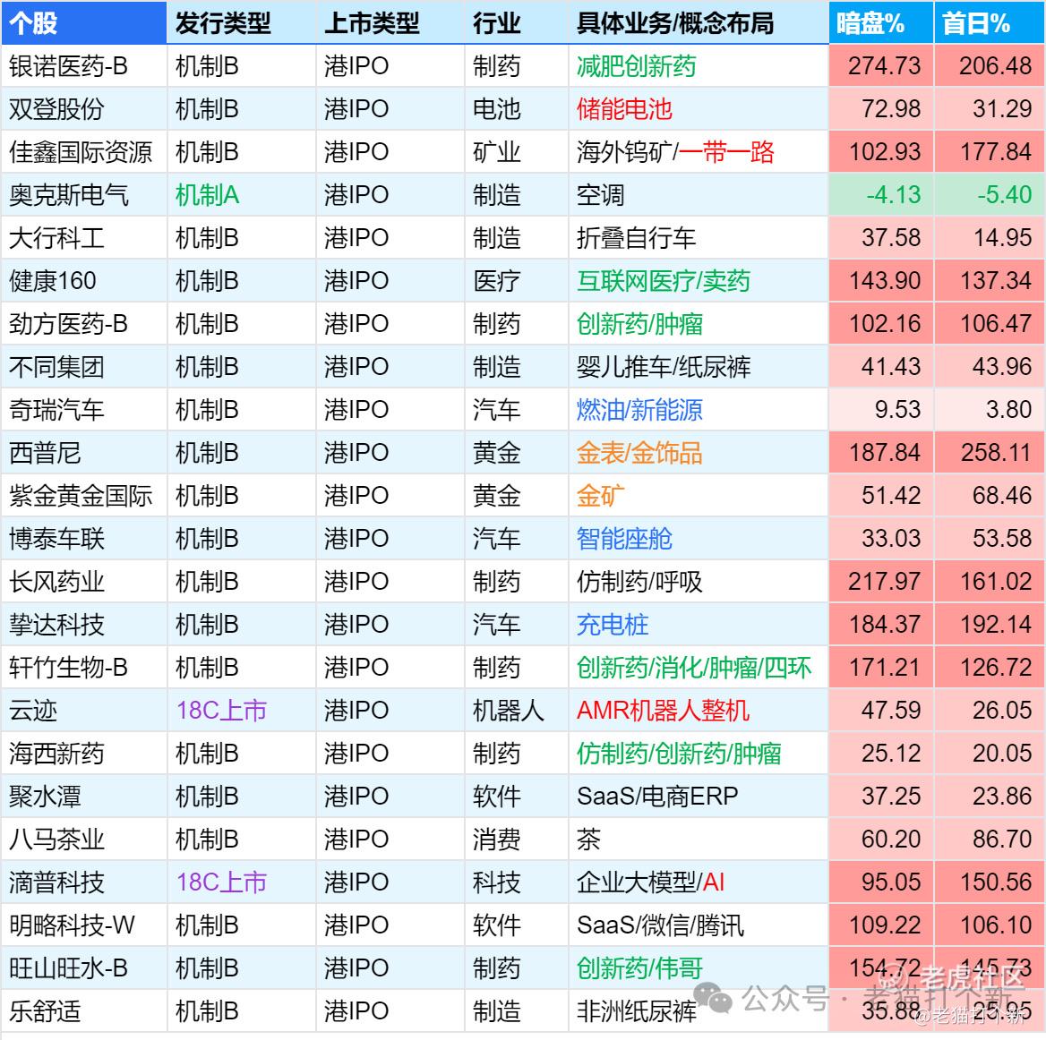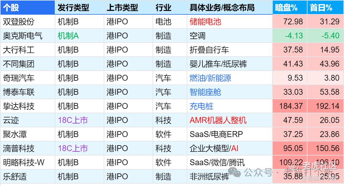 港股主板首次上市中,整体表现很不错,赚钱胜率高达97%,就一家机制A的奥克斯破发4-6%,也就是说港首次上市+机制B的胜率是100%。关于奥克斯破发,也要算到空调业务基本面上去,因为小米卷家电卷的很厉害,当时格力股价都被干崩了,对于奥克斯市场份额大家也不看好。