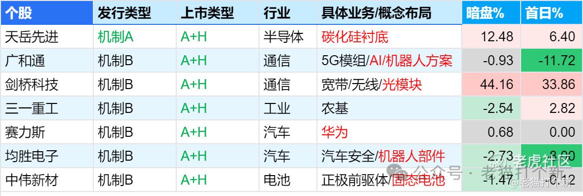 A+H整体就比较弱了,毕竟还得看另一边的脸色,真正能算“有肉”的只有两只,机制B才开始时的碳化硅衬底龙头天岳先进、布局1.6T光模块二线厂的剑桥科技,都是在当下AI赛道中占有一定地位的企业,具体折价分析放在以后的估值篇。