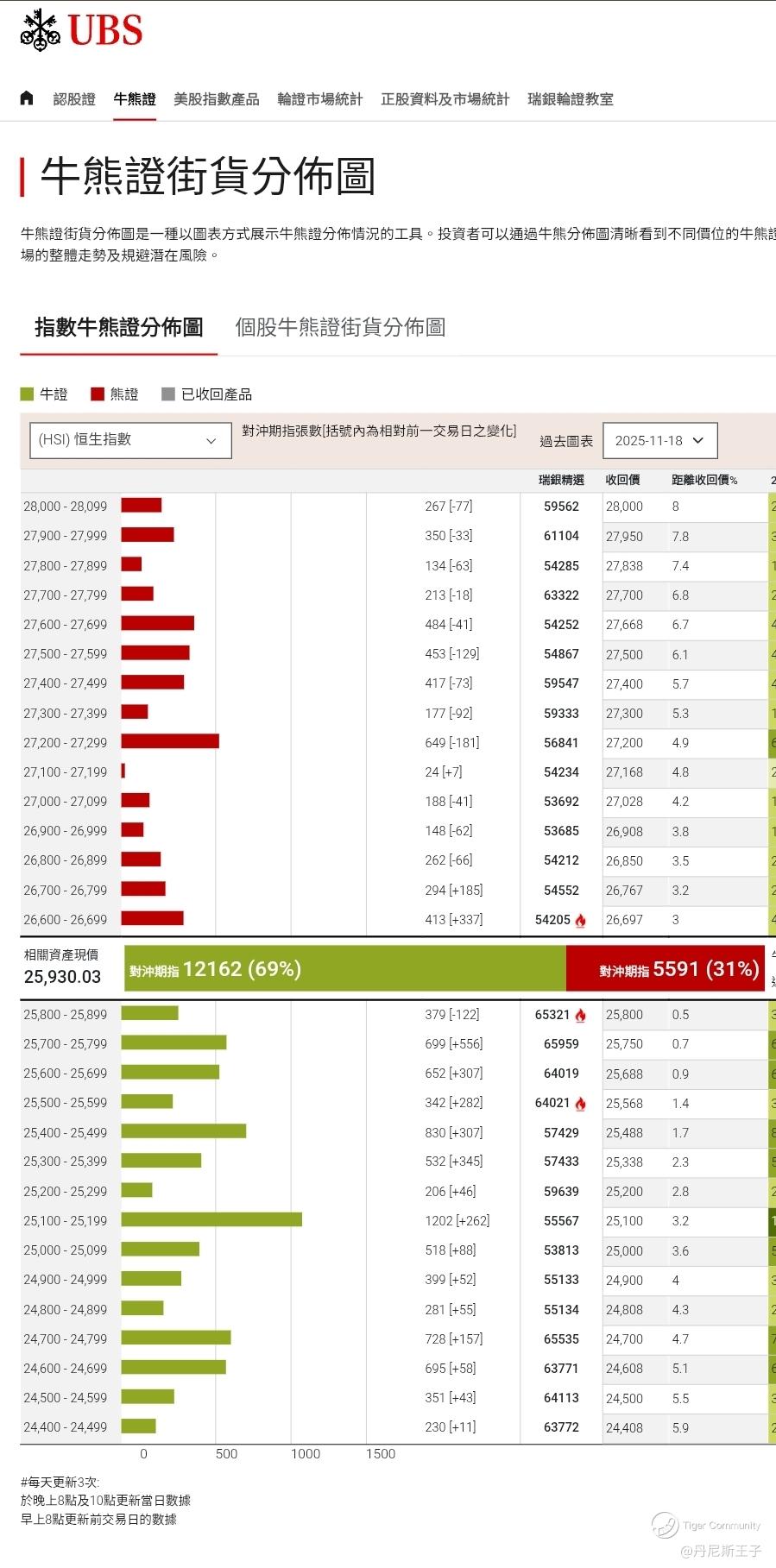 于11月19日至11月20日交易日上市之牛熊证分布图: