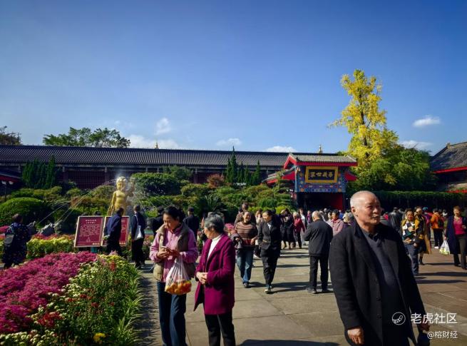清晨,当第一缕阳光洒在禅院的飞檐翘角上,空气中弥漫着清冽的菊香与淡淡的檀香。游客们已络绎不绝。他们中有携手相伴的白发夫妻,有幸福满满的一家几口,也有身着汉服、手持团扇前来拍照的少女,还少不了扛着“长枪短炮”的摄影爱好者。