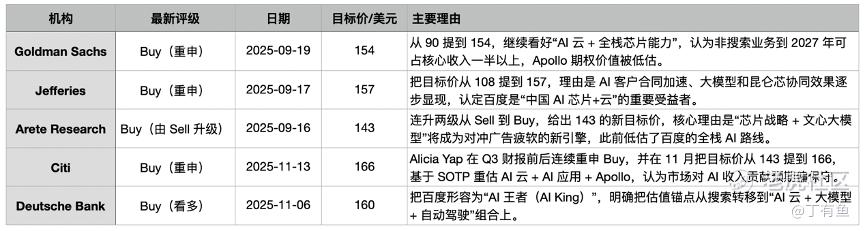 从最近两个月的机构评级变动看,华尔街对当前百度的认知,似乎已是“全栈AI公司”。