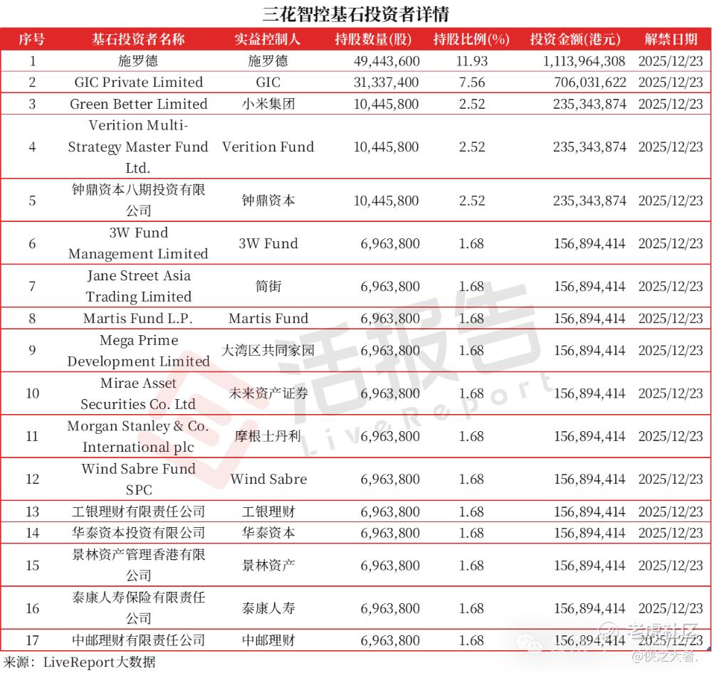 3、三花智控:17家基石解禁,含“市场投资机构”较多