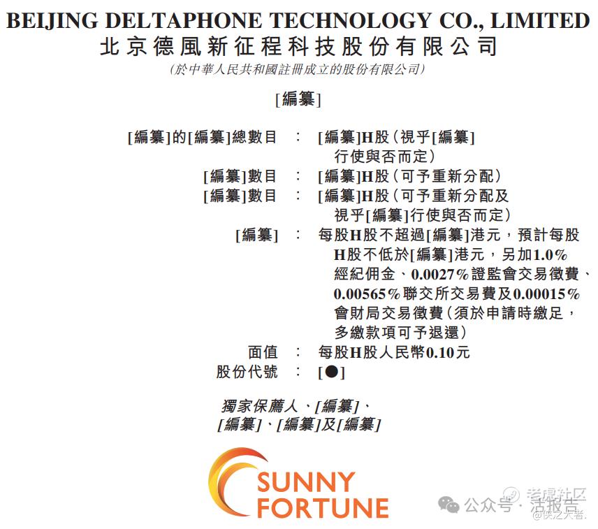 **获悉,北京德风新征程科技股份有限公司BEIJING DELTAPHONE TECHNOLOGY CO., LIMITED(简称“德风新征程”)于2025年11月14日首次在港交所递交上市申请,拟在香港主板上市。