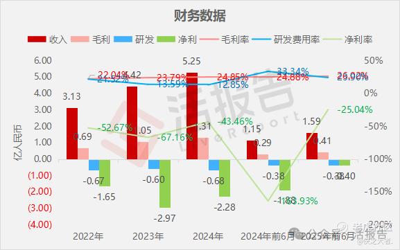 收入分别约为人民币3.13亿、4.42亿、5.25亿、1.15亿、1.59亿,2025年前6月同比+38.85%;