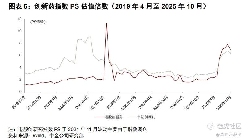 经历了近三年的估值消化后,2Q25 以来港股和 A 股创新药估值均出现 PS倍数的明显拔升,传递扩张周期的信号。在创新药行业经典的远期销售峰值倍数估值体系下,现阶段创新药企业管线研发的积极进展,例如读出具有竞争力的临床数据和达成对外授权,增强了市场对于公司远期销售峰值预期达成度的信心,乃至对未来峰值更加乐观,因此提高了市场对于公司现阶段市销率估值的容忍度。