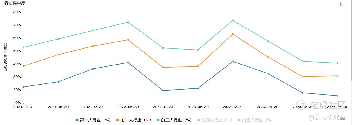 在行业配置上,该基金呈现出明显的分散化趋势。根据Wind数据,自2023年四季度以来,其行业集中度整体下降。
