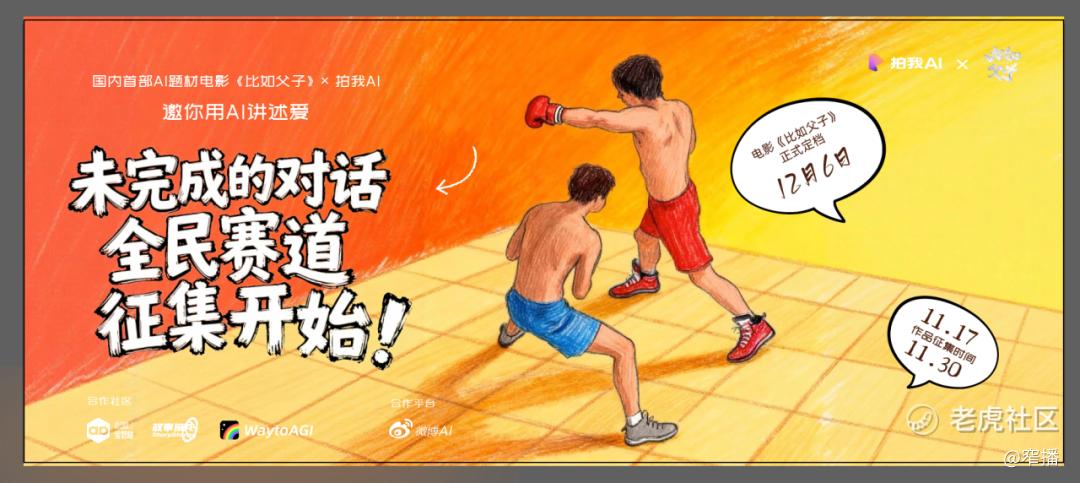 刚刚定档12月6日上映的电影《比如父子》,导演仇晟讲述了一个利用AI技术将逝去的父亲复活成为一名「AI拳击手」,并在拳台上通过虚拟拳击赛完成了一场时空错位的父子对话的故事。AI在这个故事中,不仅是复活父亲的工具,也成为了情感表达的手段。