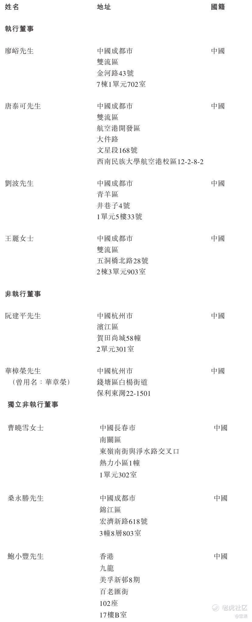 诺比侃执行董事分别为廖峪、唐泰可、刘波、王丽女士,非执行董事分别为阮建平、华樟荣(曾用名:华章荣),独立非执行董事分别为曹晓雪女士、桑永胜、鲍小丰。