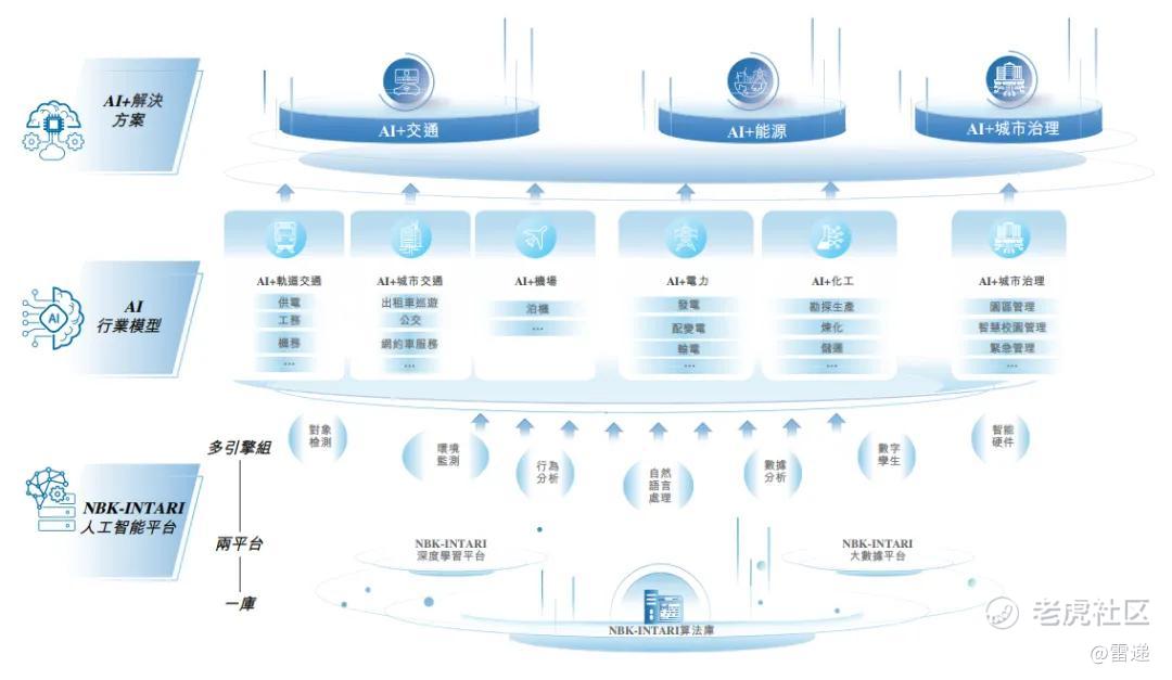 诺比侃业务包括 NBK-INTARI 平台、 A I 行业模型和 A I 解决方案三层。