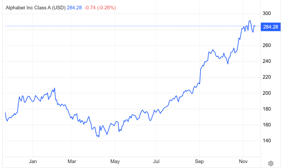 不久前,由于 ChatGPT 的风靡全球以及 Google Gemini AI 应用长期不及 ChatGPT,一些投资者曾认为谷歌已经在 AI 竞争中全面落败。然而,谷歌母公司 Alphabet 诠释何谓 “后发制人”,凭借谷歌云计算平台以及基于 Gemini AI 应用的完整 AI 生态,token 量以及谷歌云和 Gemini 创收规模持续攀升,现在 Alphabet 已成为今年表现最好的大型科技股。上周,即将退休的沃伦・巴菲特执掌的伯克希尔・哈撒韦公司透露已在该公司巨额持股,这也很可能是巴菲特退休前的最后一笔大型仓位操作。