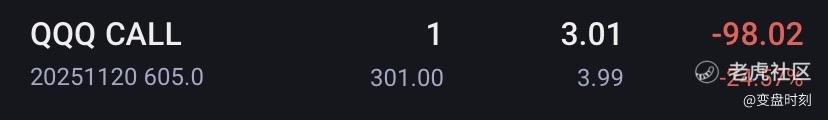 没错,昨天CALL和PUT 赚过100%后,又低位CALL了一手,这次买的数量最少,但是继续翻倍,最近半个月QQQ胜率还是80%+