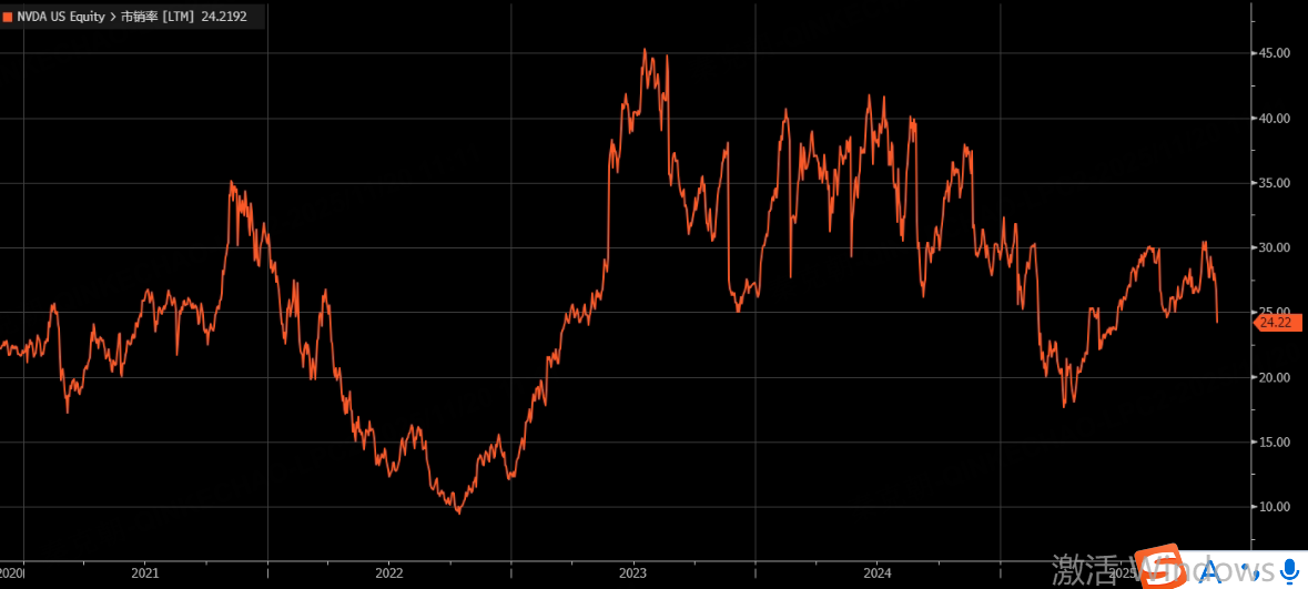 分析完三季报,我们再来看英伟达的估值,从市销率来看,当前为24倍: