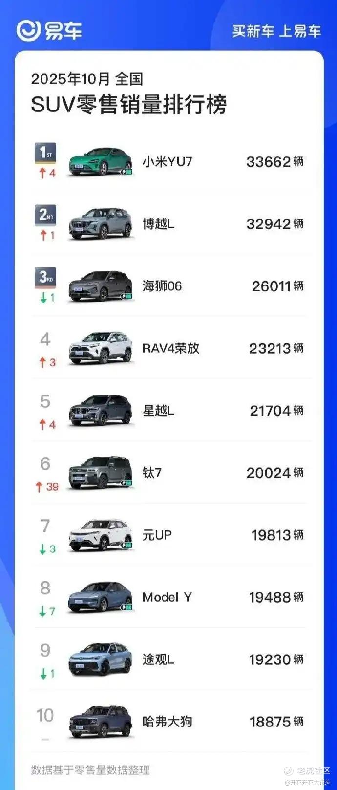 $小米集团-W(01810)$ 小米高端化这回又有大突破,手机和汽车两条线都在高端市场领跑。Q3国内4000-6000元手机市场,小米占了 18.9%,17 Pro Max双11全平台国产 6000 元机销量、销售额都是第一;汽车更狠,SU7是2025中大型轿车销量第一,YU7 10月直接卖成全品类SUV第一。这俩高端引擎一发力,公司基本盘是越来越稳了